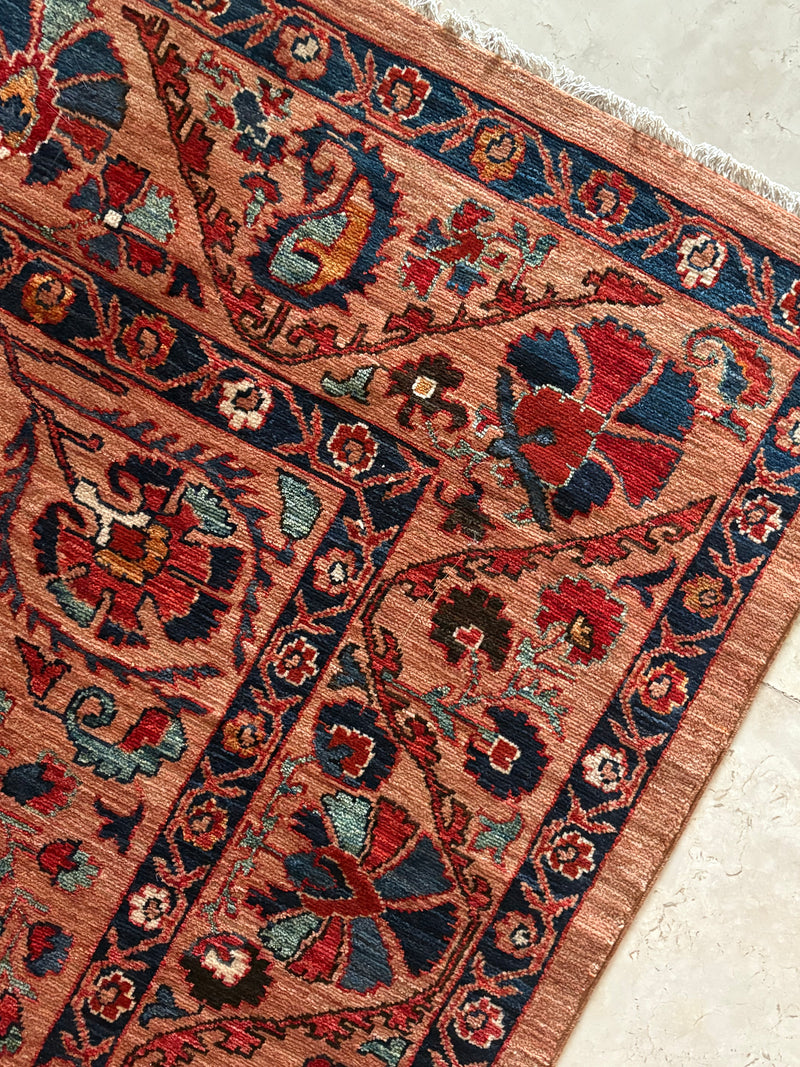 This rug has been professionally cleaned; age-related wear and natural inconsistencies are inherent in these unique, handcrafted vintage rugs.