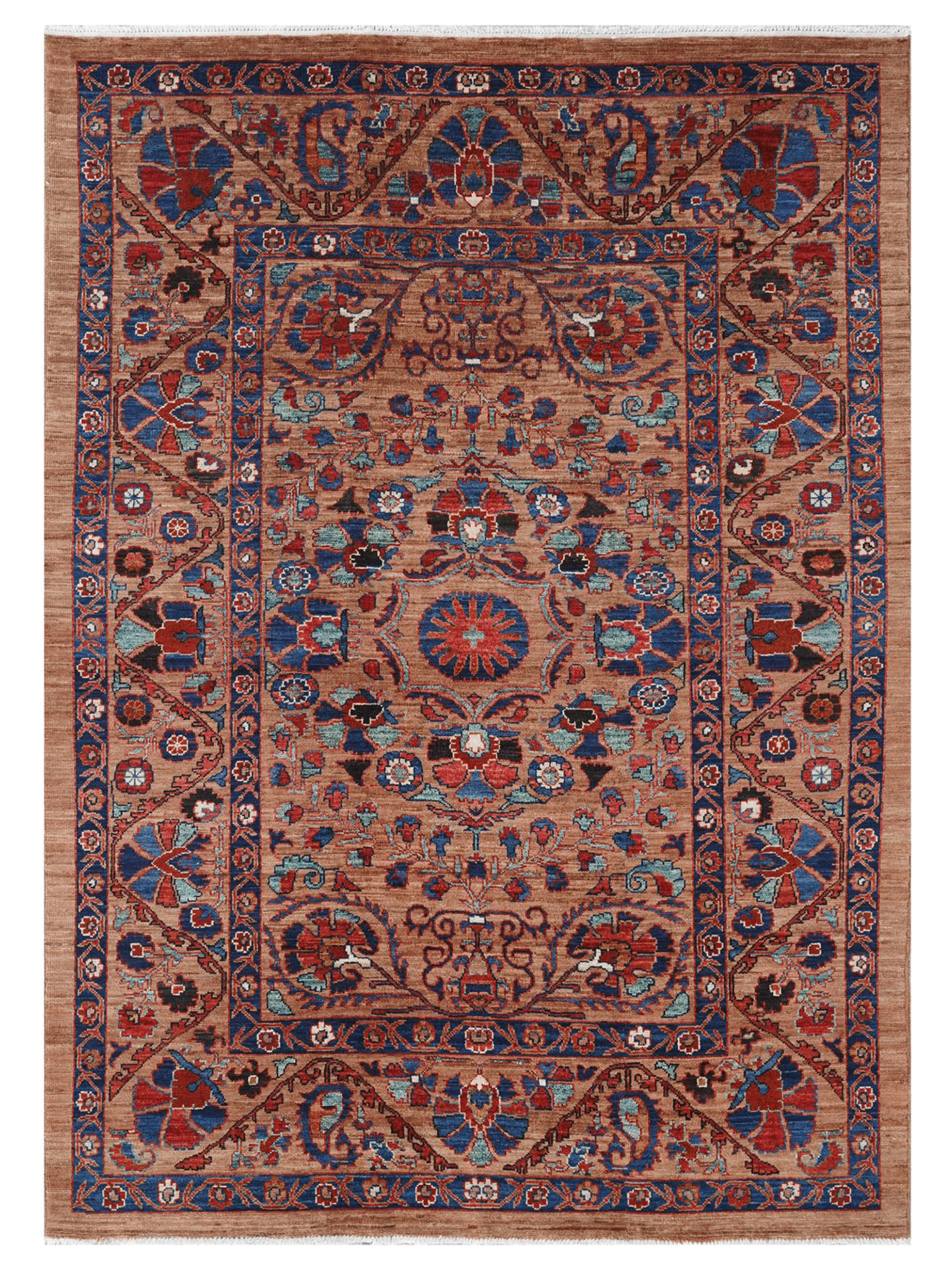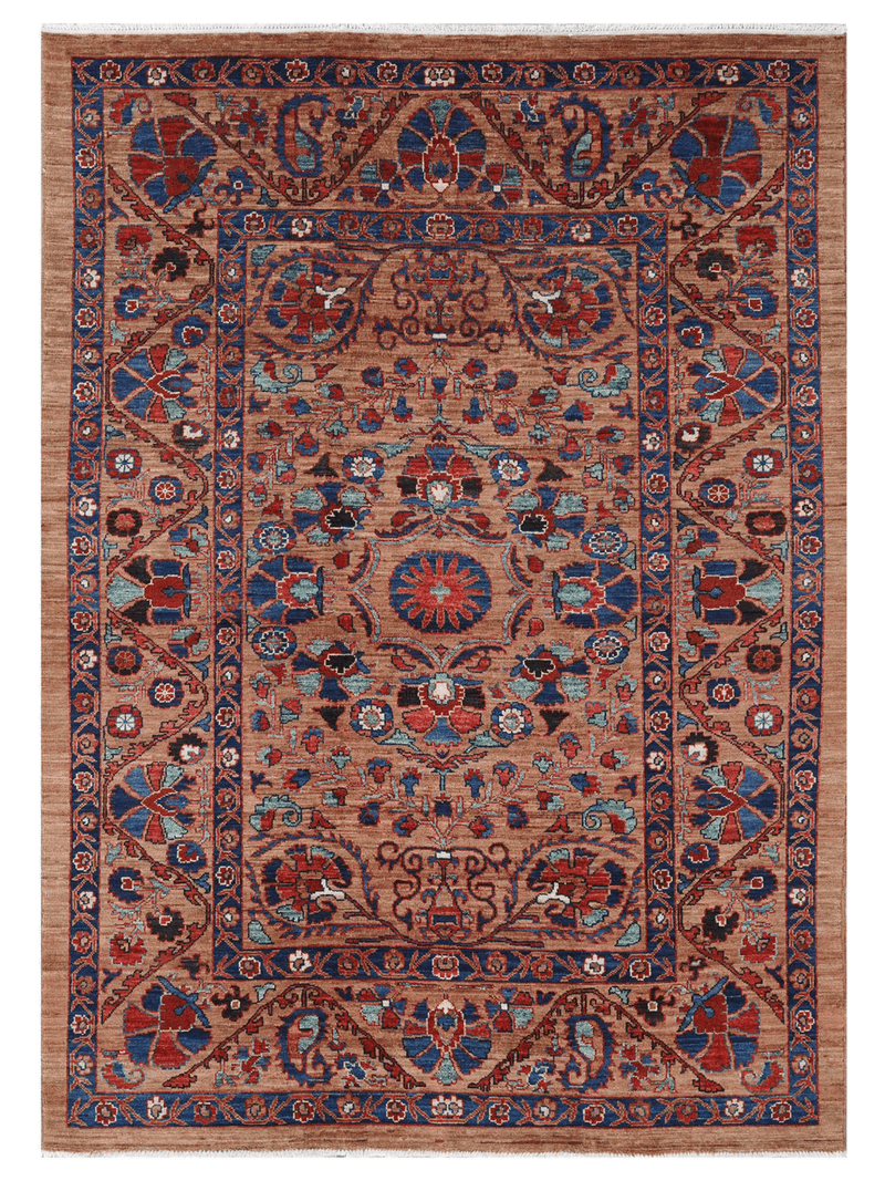 Afghan Chobi — Floral Medallion in Taupe & Navy — No. 138
