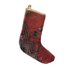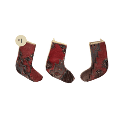 Make your Christmas traditions extra special with our beautiful heirloom stockings— completely unique and entirely handmade from storied rug remnants. Crafted from 100% wool and backed with cotton fabric, each stocking measures approximately 11 x 15 inches.