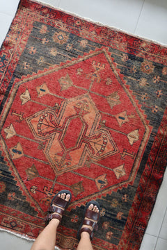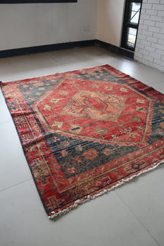 This Persian Bakshaish rug is a unique treasure, with its rare square size and beautifully worn earth colors. Perfect for adding an extra touch of charm to any space.