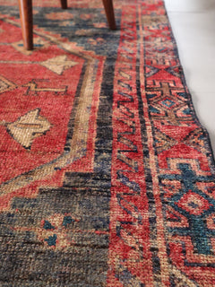 This rug has been professionally cleaned; age-related wear and natural inconsistencies are inherent in these unique, handcrafted vintage rugs.