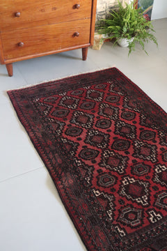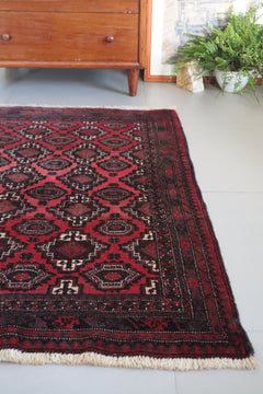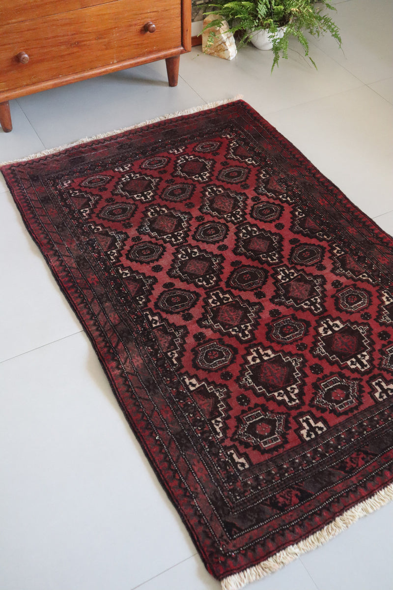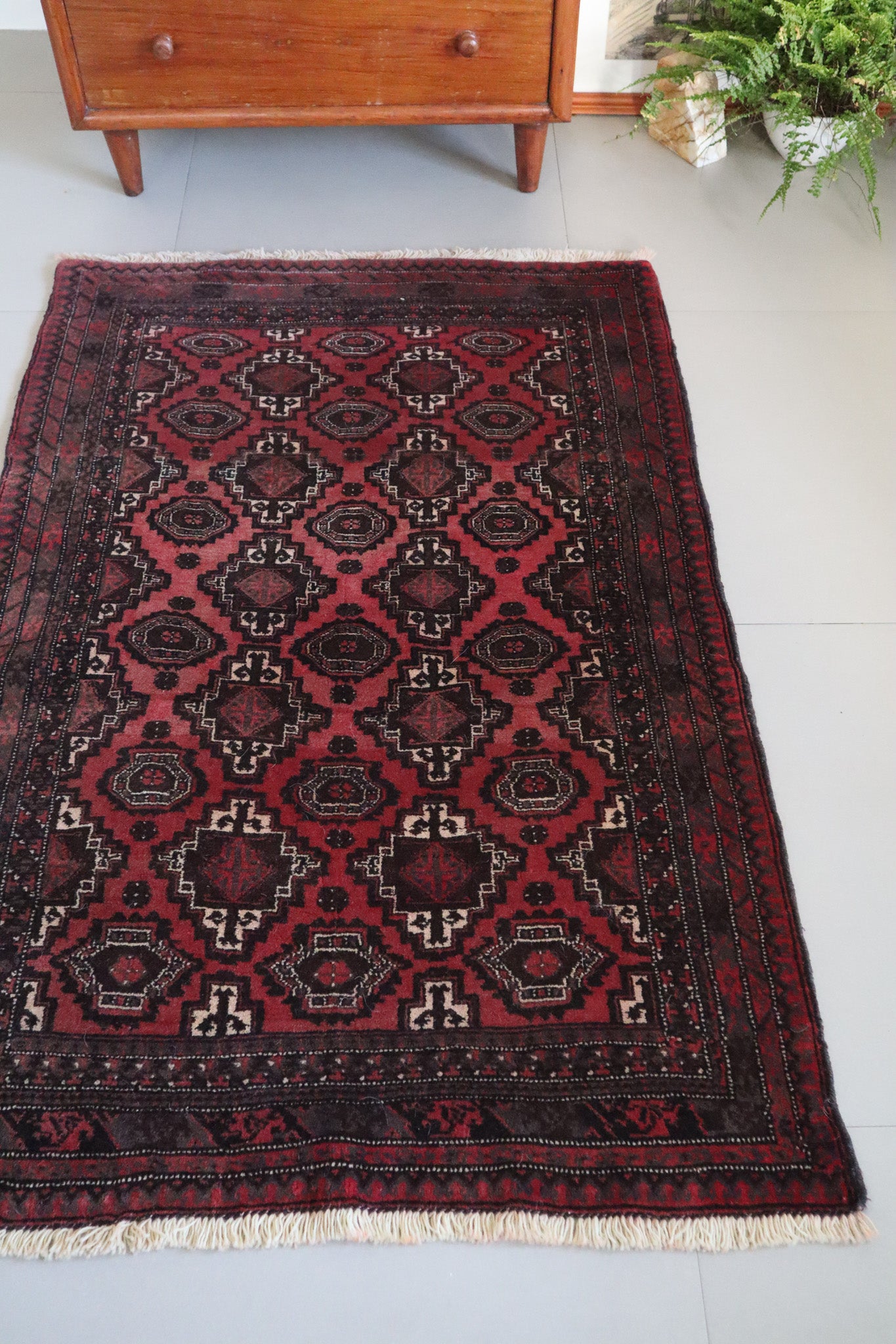 The Balouch is a classic Afghan rug with rich, deep reds and browns. Enjoy the beauty of a traditional rug with the convenience of a smaller size.