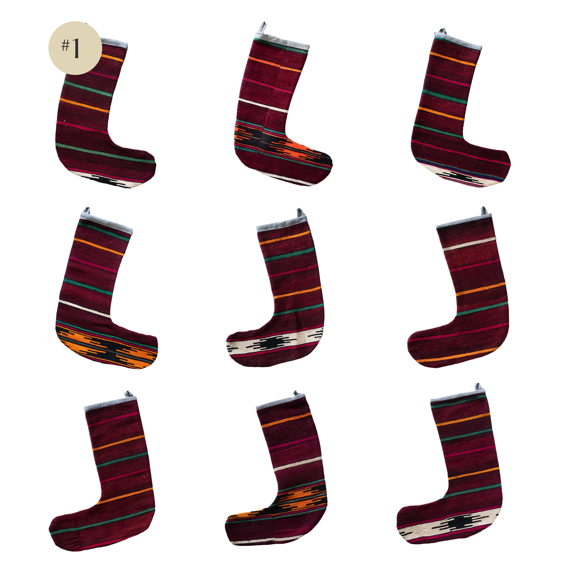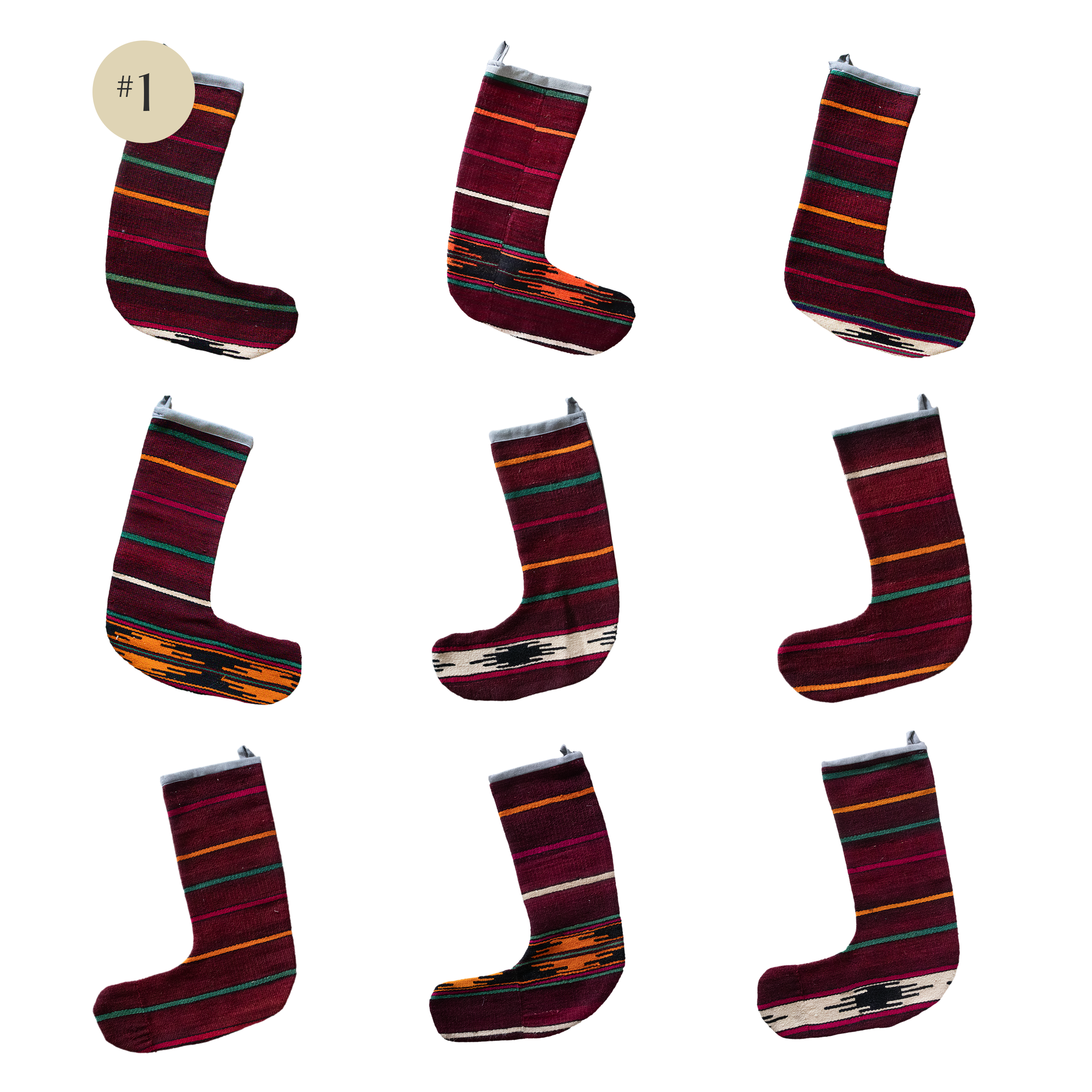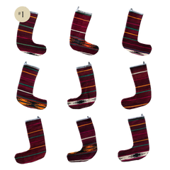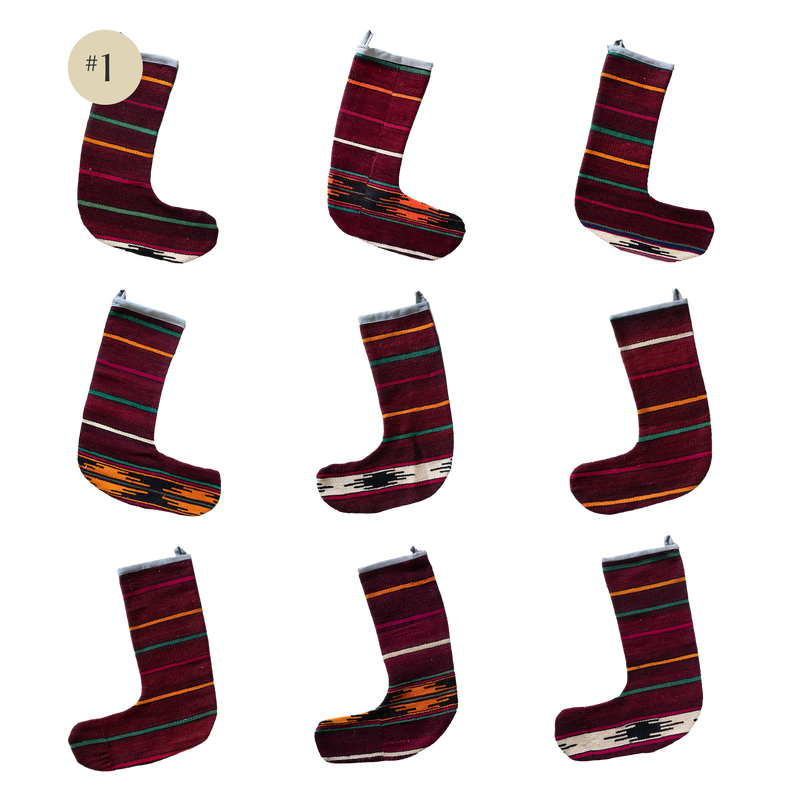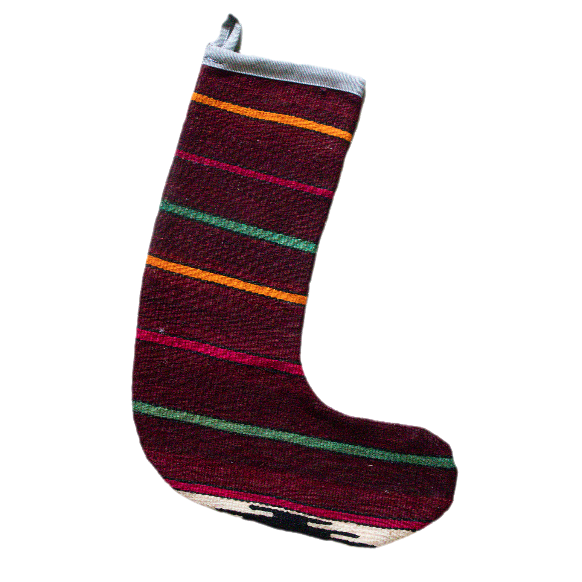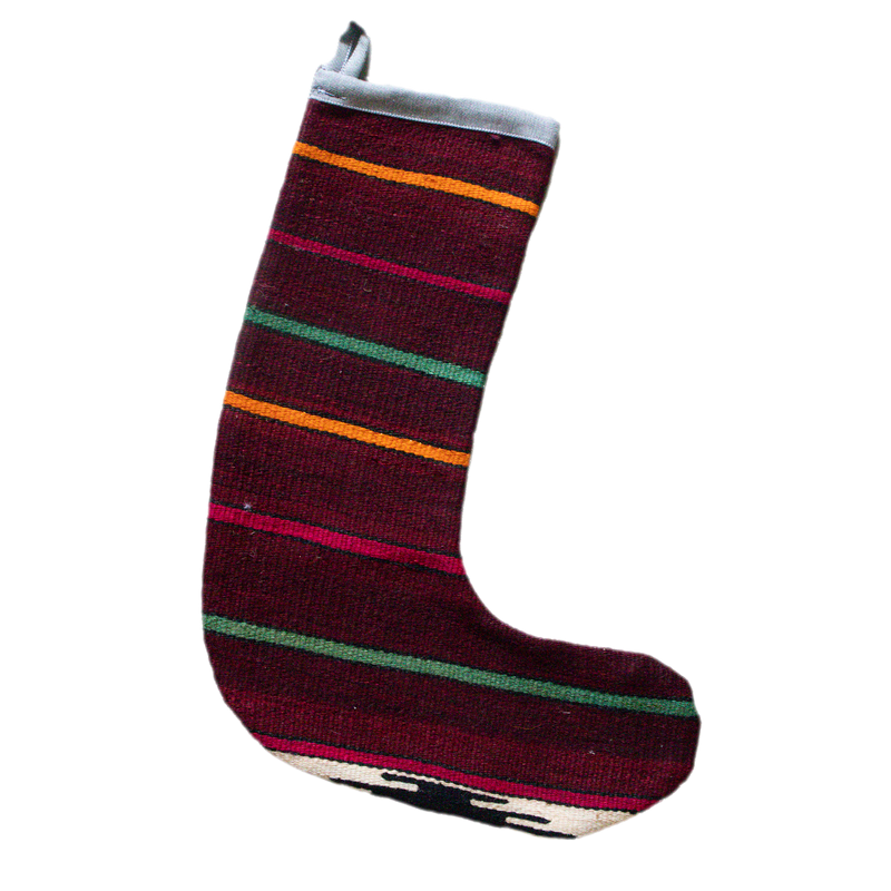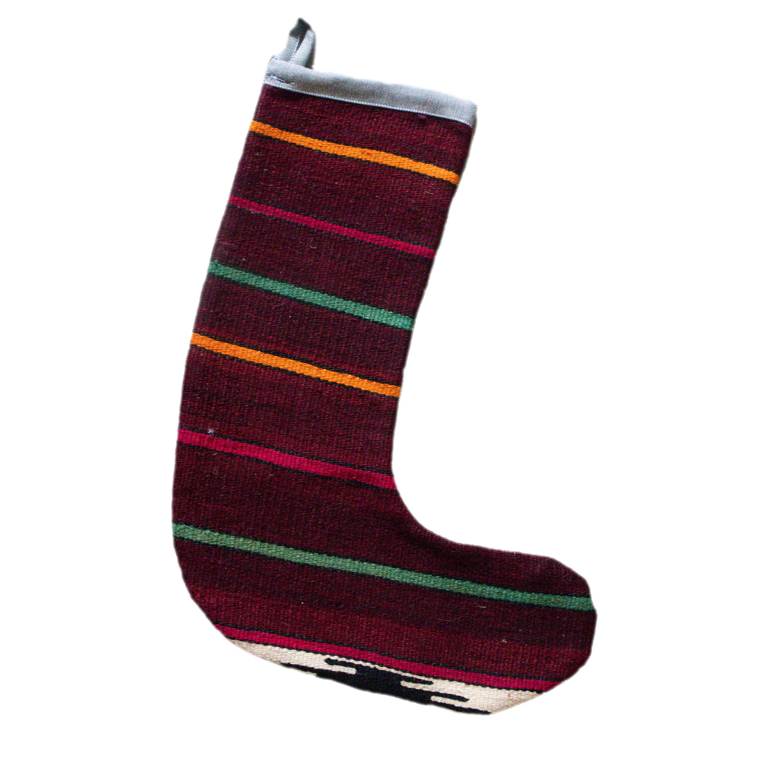 Make your Christmas traditions extra special with our beautiful heirloom stockings— completely unique and entirely handmade from storied rug remnants. Crafted from 100% wool and backed with cotton fabric, each stocking measures approximately 18 x 13 inches.