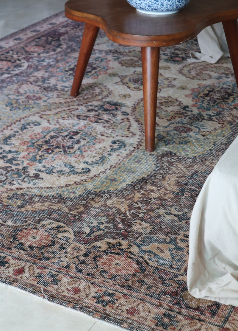 It reads as a considered, grown-up choice—ornate enough to look intentional, with a low, worn-in pile and layered colours that sit easily under furniture and handle everyday use without fuss.