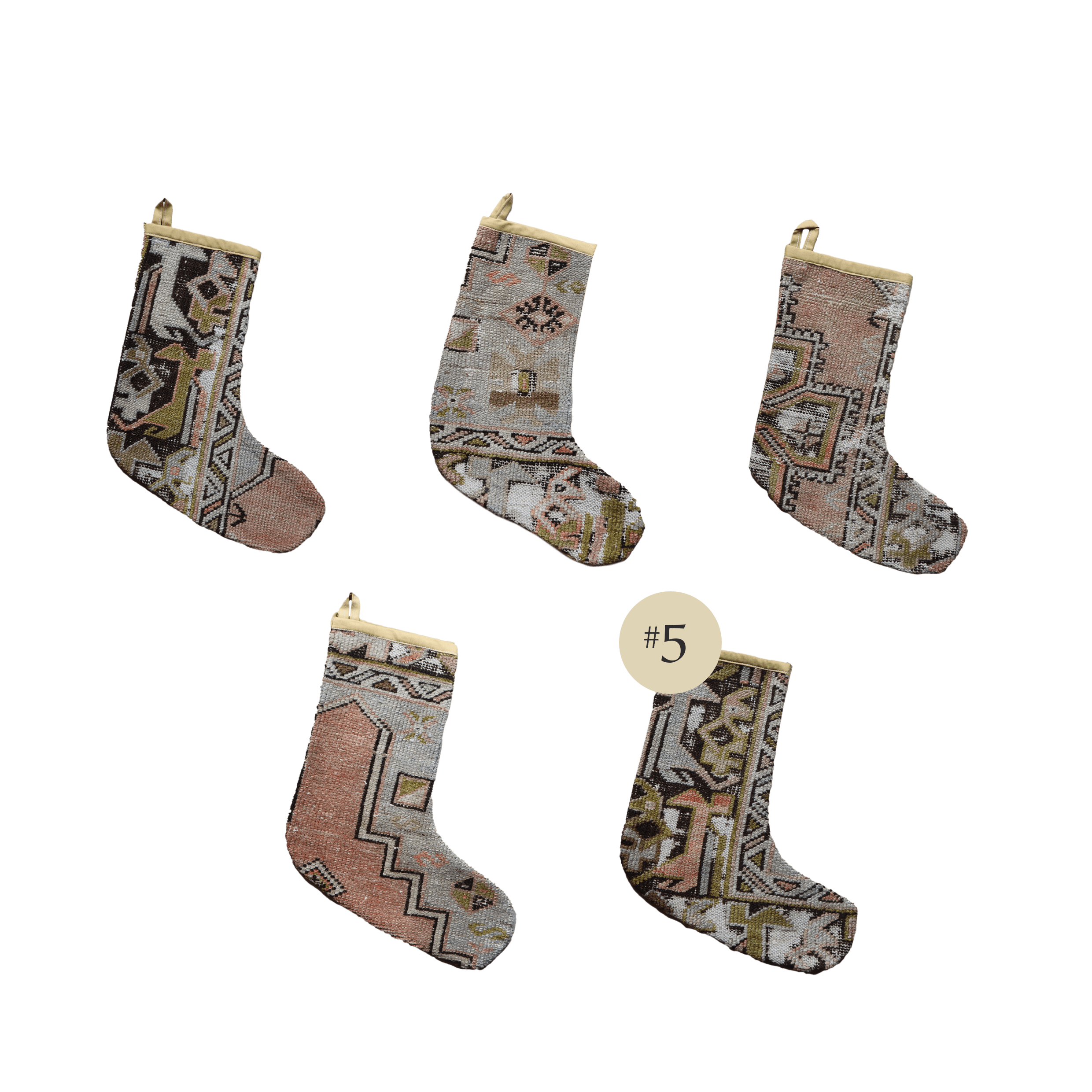 completely unique and entirely handmade from storied rug remnants. Crafted from 100% wool and backed with cotton fabric, each stocking measures approximately 11 x 15 inches.