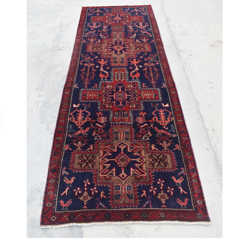This Hamadan Runner offers a stunning jewel toned design, featuring a deep blue background and intricate figural details. Enhance the beauty of any space while adding a touch of traditional elegance with this unique runner.