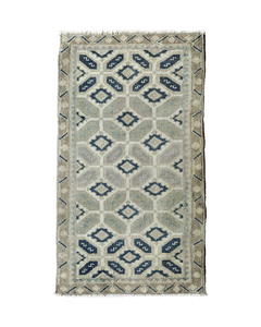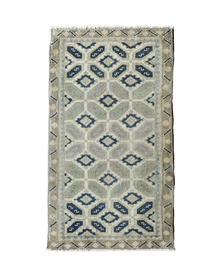 All rugs in the collection are vintage or antique, hand-knotted pieces. Imperfections and color variations reflect their graceful aging and human craftsmanship. Photos were taken under natural light to show their true colors, but they may appear differently in various lighting settings or screens.