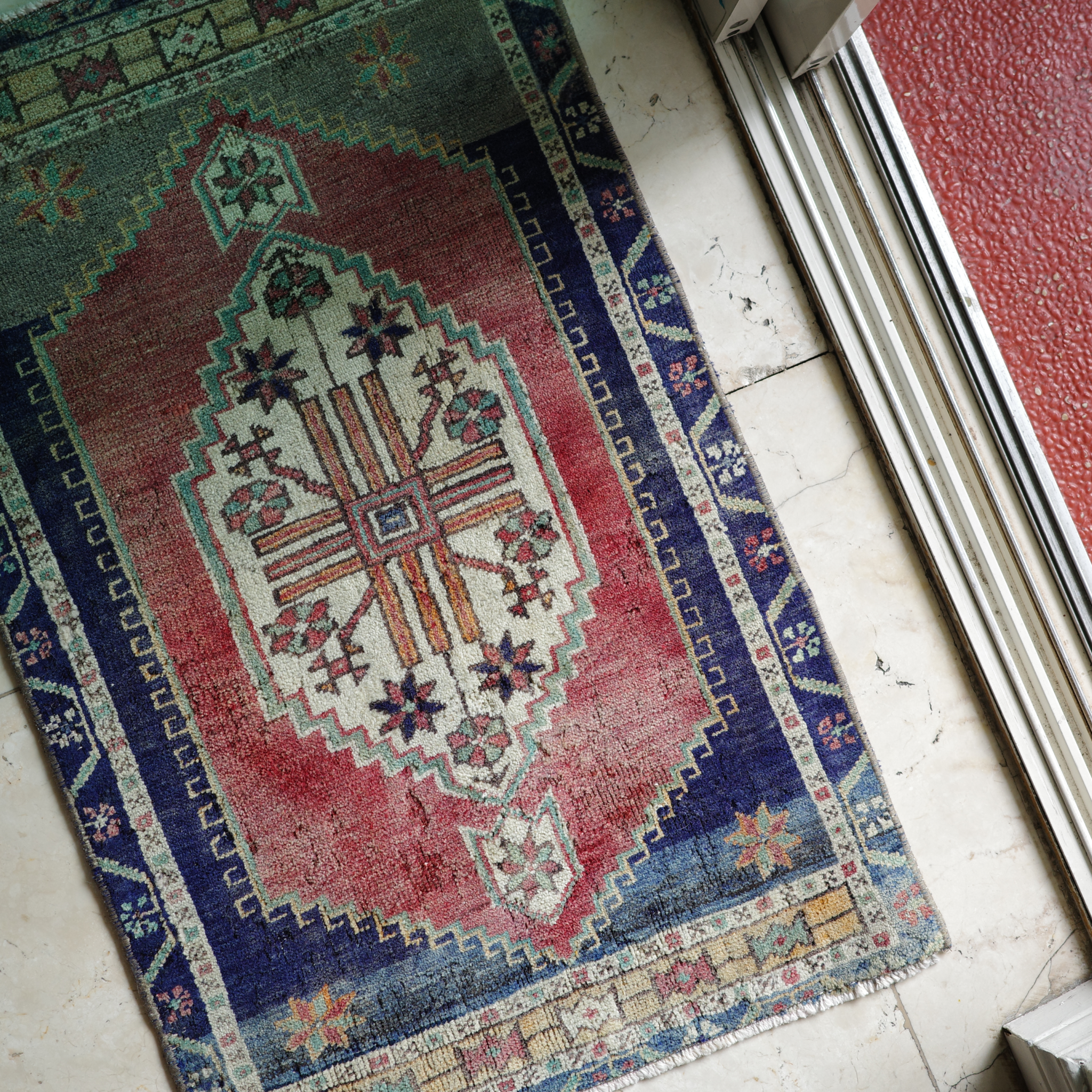 Turkish Yastik rugs are small, handwoven wool rugs traditionally used as cushion covers or decorative pieces. Originating from Anatolia, they feature intricate geometric patterns, vibrant colors, and timeless craftsmanship.
