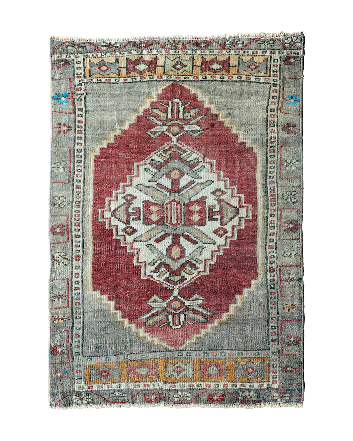 All rugs in the collection are vintage or antique, hand-knotted pieces. Imperfections and color variations reflect their graceful aging and human craftsmanship. Photos were taken under natural light to show their true colors, but they may appear differently in various lighting settings or screens.