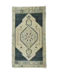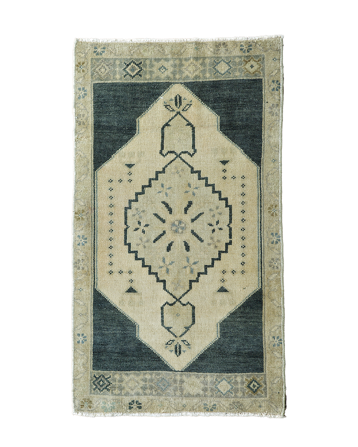 All rugs in the collection are vintage or antique, hand-knotted pieces. Imperfections and color variations reflect their graceful aging and human craftsmanship. Photos were taken under natural light to show their true colors, but they may appear differently in various lighting settings or screens.