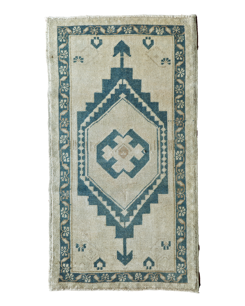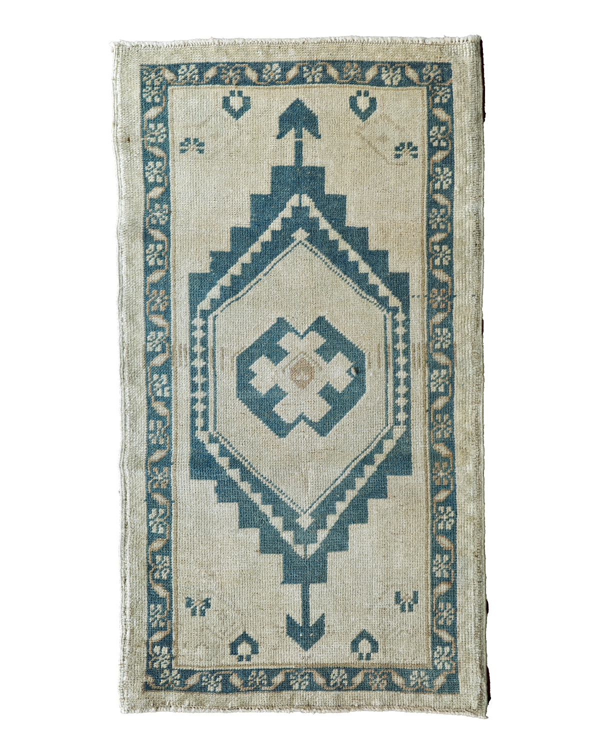 All rugs in the collection are vintage or antique, hand-knotted pieces. Imperfections and color variations reflect their graceful aging and human craftsmanship. Photos were taken under natural light to show their true colors, but they may appear differently in various lighting settings or screens.