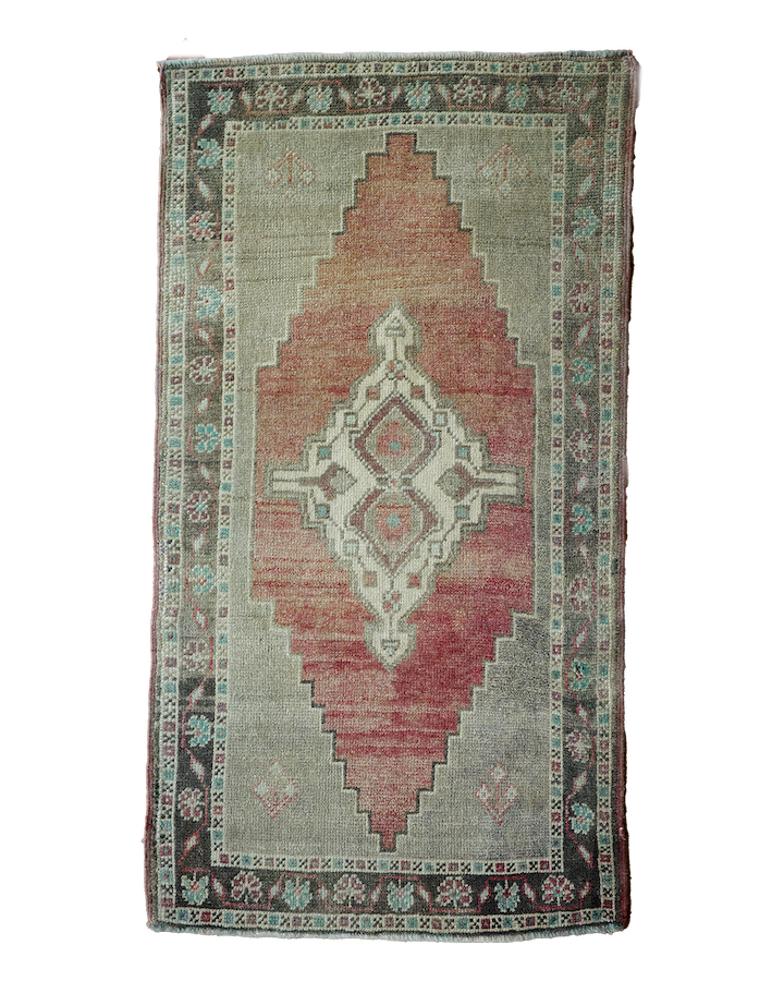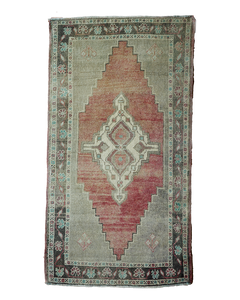 All rugs in the collection are vintage or antique, hand-knotted pieces. Imperfections and color variations reflect their graceful aging and human craftsmanship. Photos were taken under natural light to show their true colors, but they may appear differently in various lighting settings or screens.
