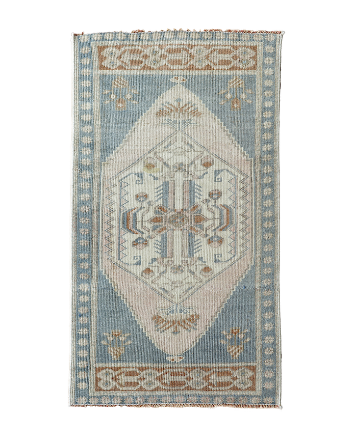 All rugs in the collection are vintage or antique, hand-knotted pieces. Imperfections and color variations reflect their graceful aging and human craftsmanship. Photos were taken under natural light to show their true colors, but they may appear differently in various lighting settings or screens.