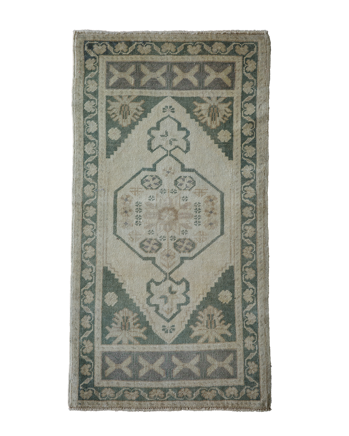 All rugs in the collection are vintage or antique, hand-knotted pieces. Imperfections and color variations reflect their graceful aging and human craftsmanship. Photos were taken under natural light to show their true colors, but they may appear differently in various lighting settings or screens.