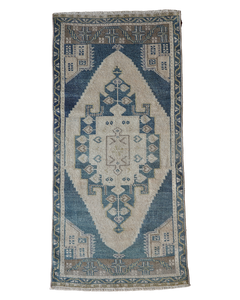 All rugs in the collection are vintage or antique, hand-knotted pieces. Imperfections and color variations reflect their graceful aging and human craftsmanship. Photos were taken under natural light to show their true colors, but they may appear differently in various lighting settings or screens.
