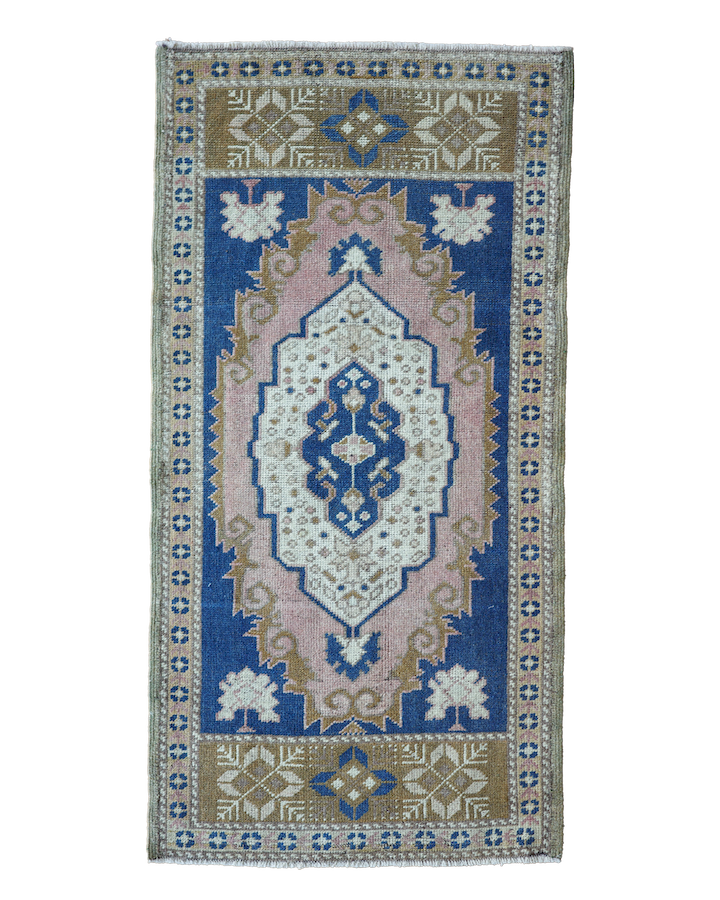 All rugs in the collection are vintage or antique, hand-knotted pieces. Imperfections and color variations reflect their graceful aging and human craftsmanship. Photos were taken under natural light to show their true colors, but they may appear differently in various lighting settings or screens.
