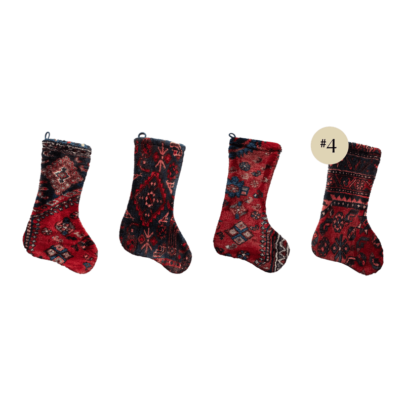 Make your Christmas traditions extra special with our beautiful heirloom stockings— completely unique and entirely handmade from storied rug remnants. Crafted from 100% wool and backed with cotton fabric, each stocking measures approximately 18 x 10 inches.