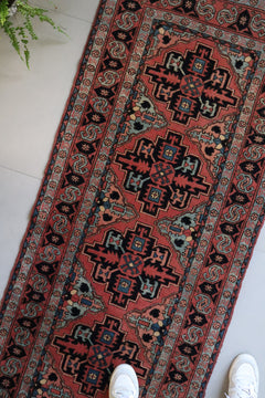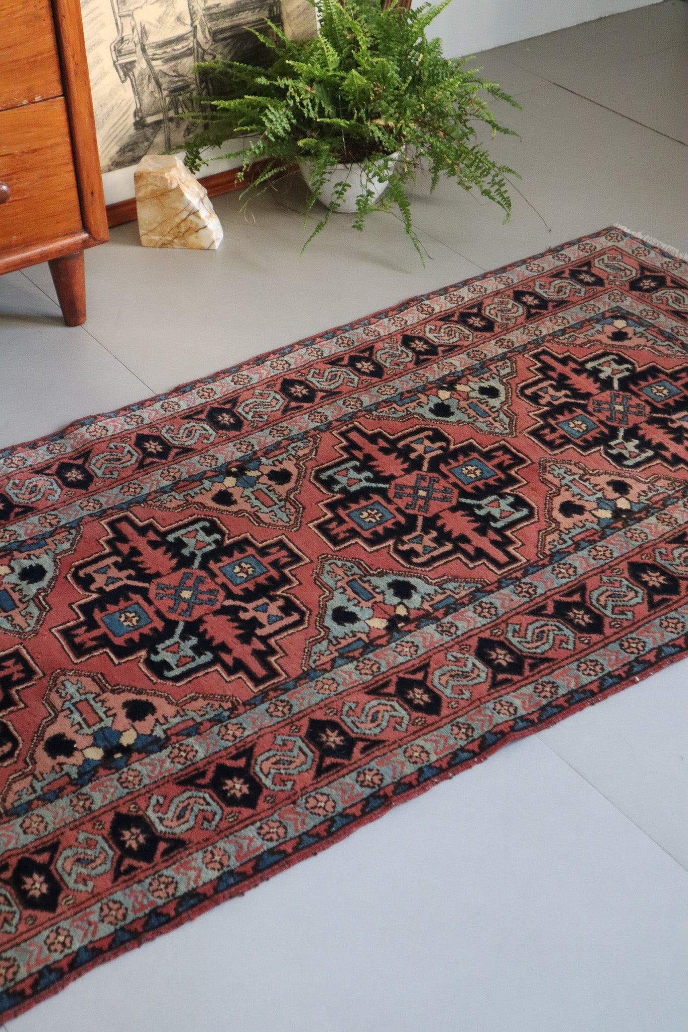 Vintage Persian Heriz Runner — Terracotta Field with Sky-Blue Accents — No. 157