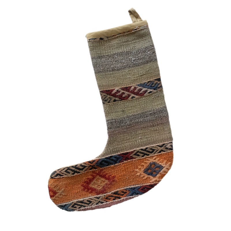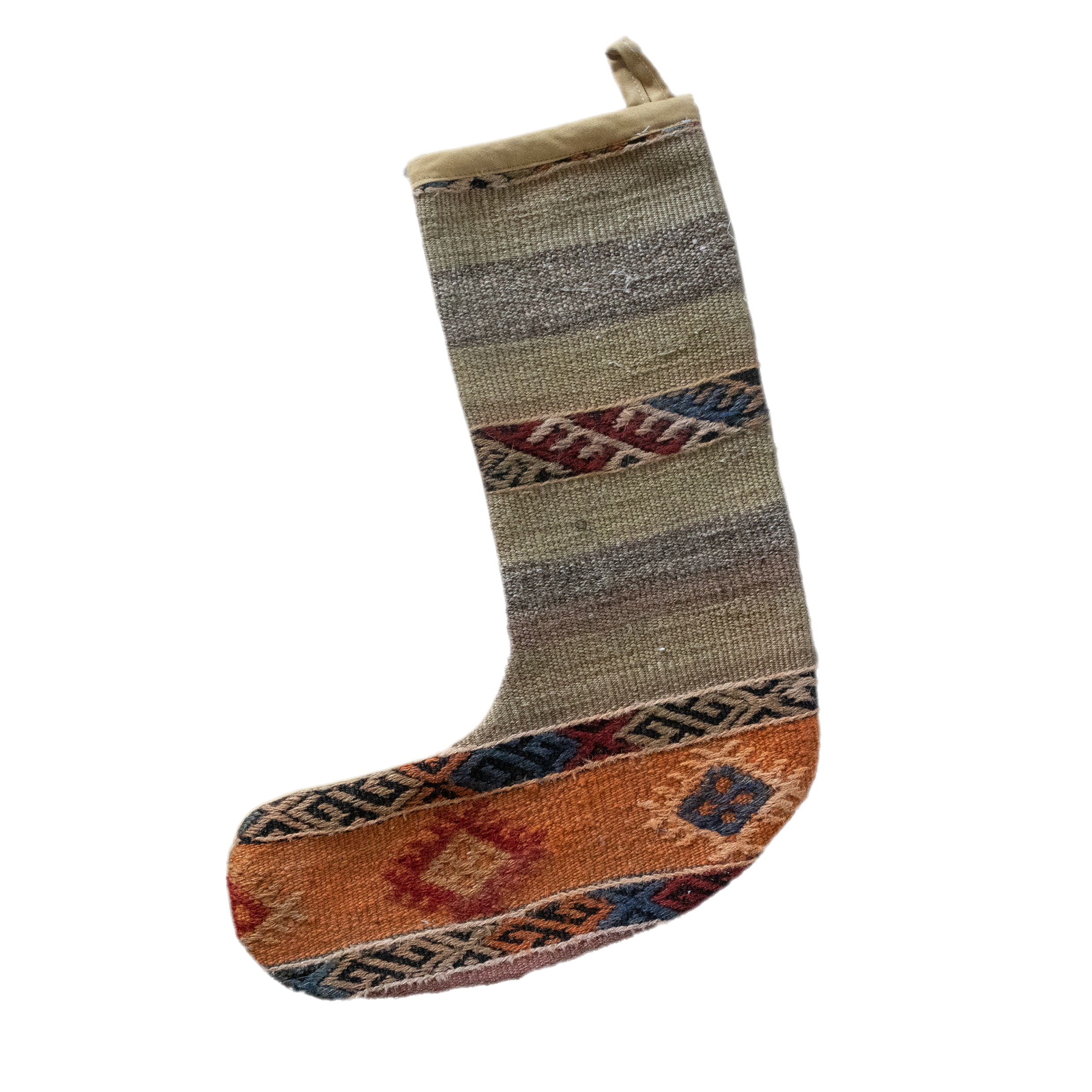 Make your Christmas traditions extra special with our beautiful heirloom stockings— completely unique and entirely handmade from storied rug remnants. Crafted from 100% wool and backed with cotton fabric, each stocking measures approximately 18 x 13 inches.