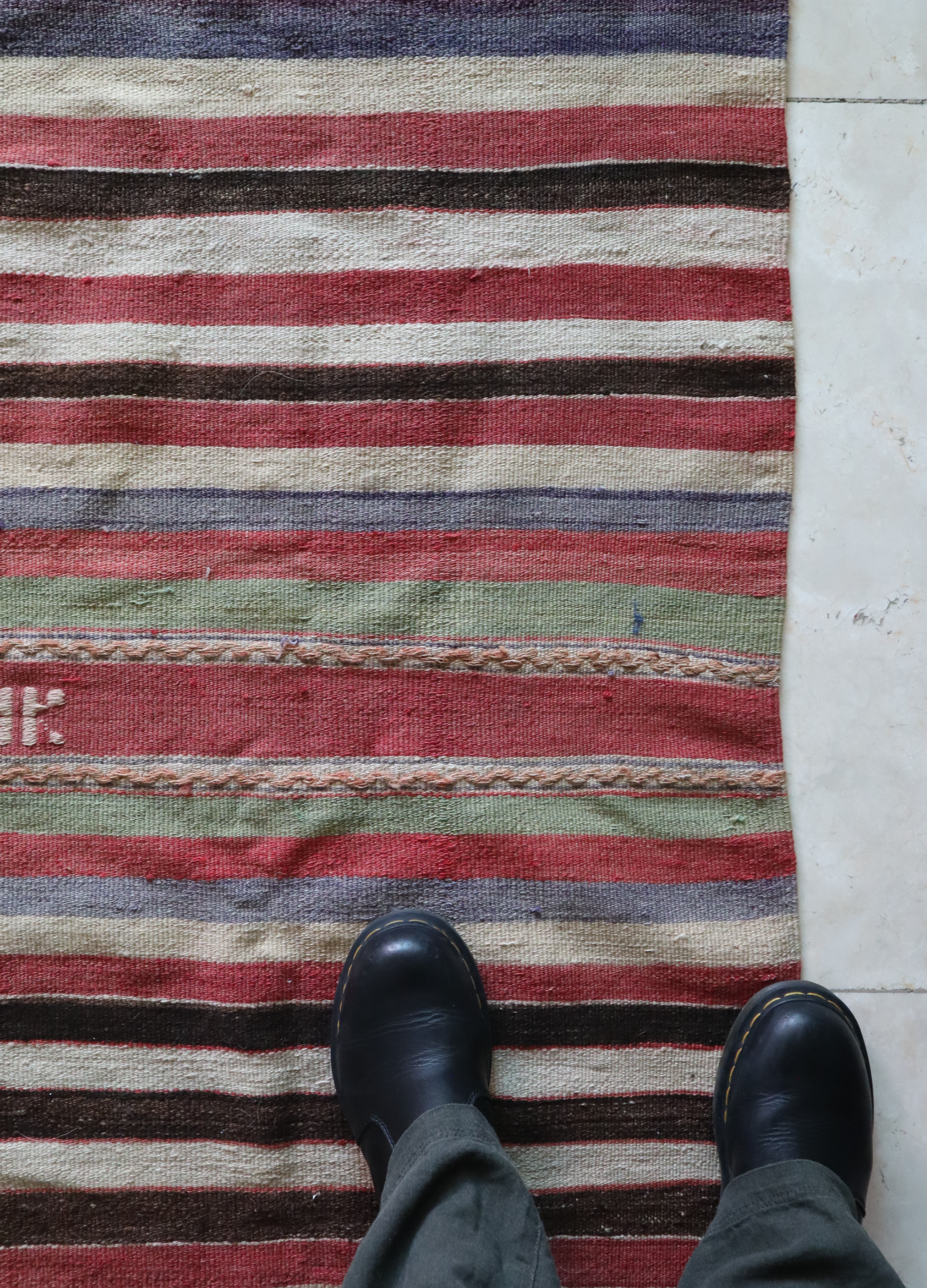 Material & Techniques: Wool and Cotton, Vegetable Dyed, Flatweave, and Hand-Woven