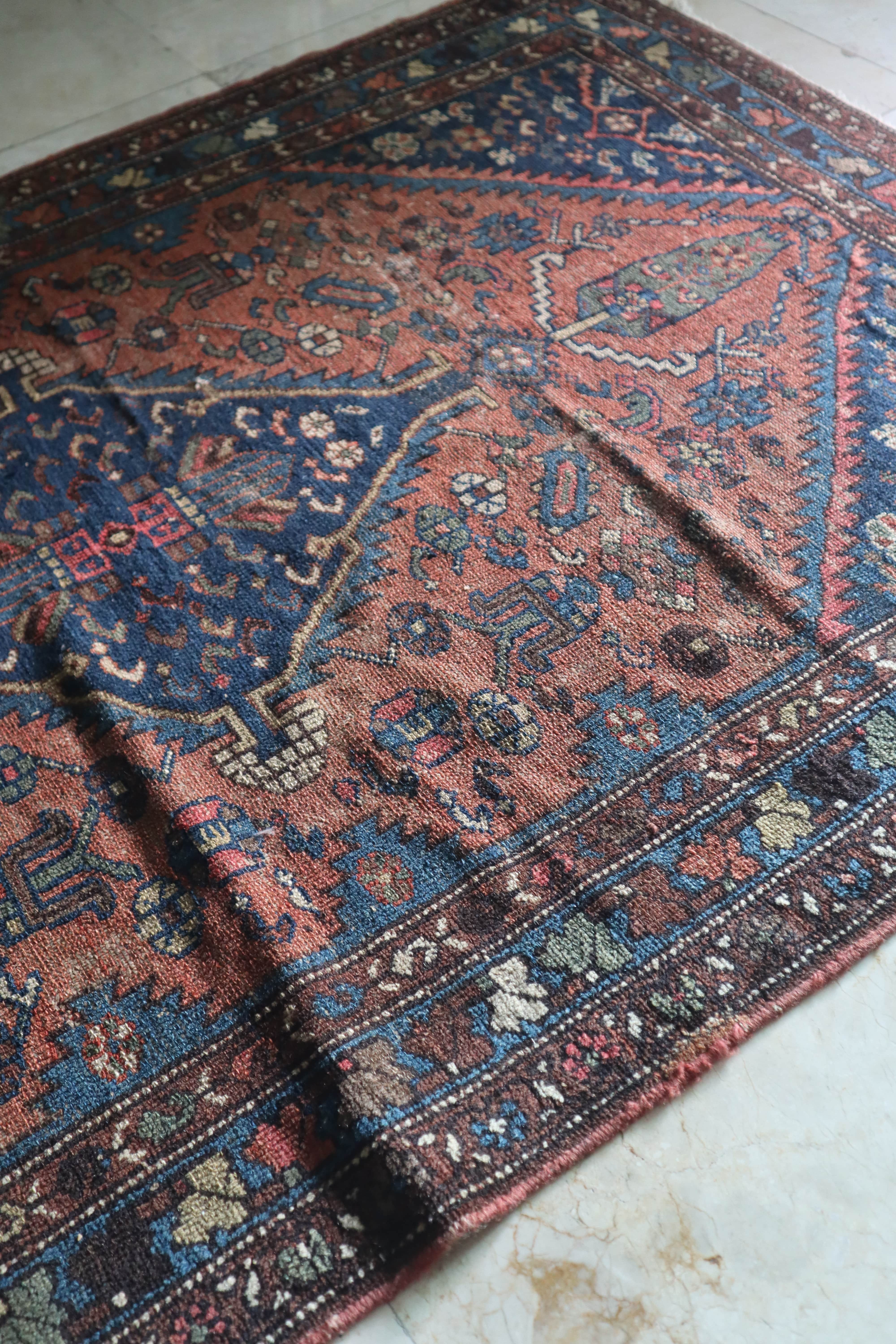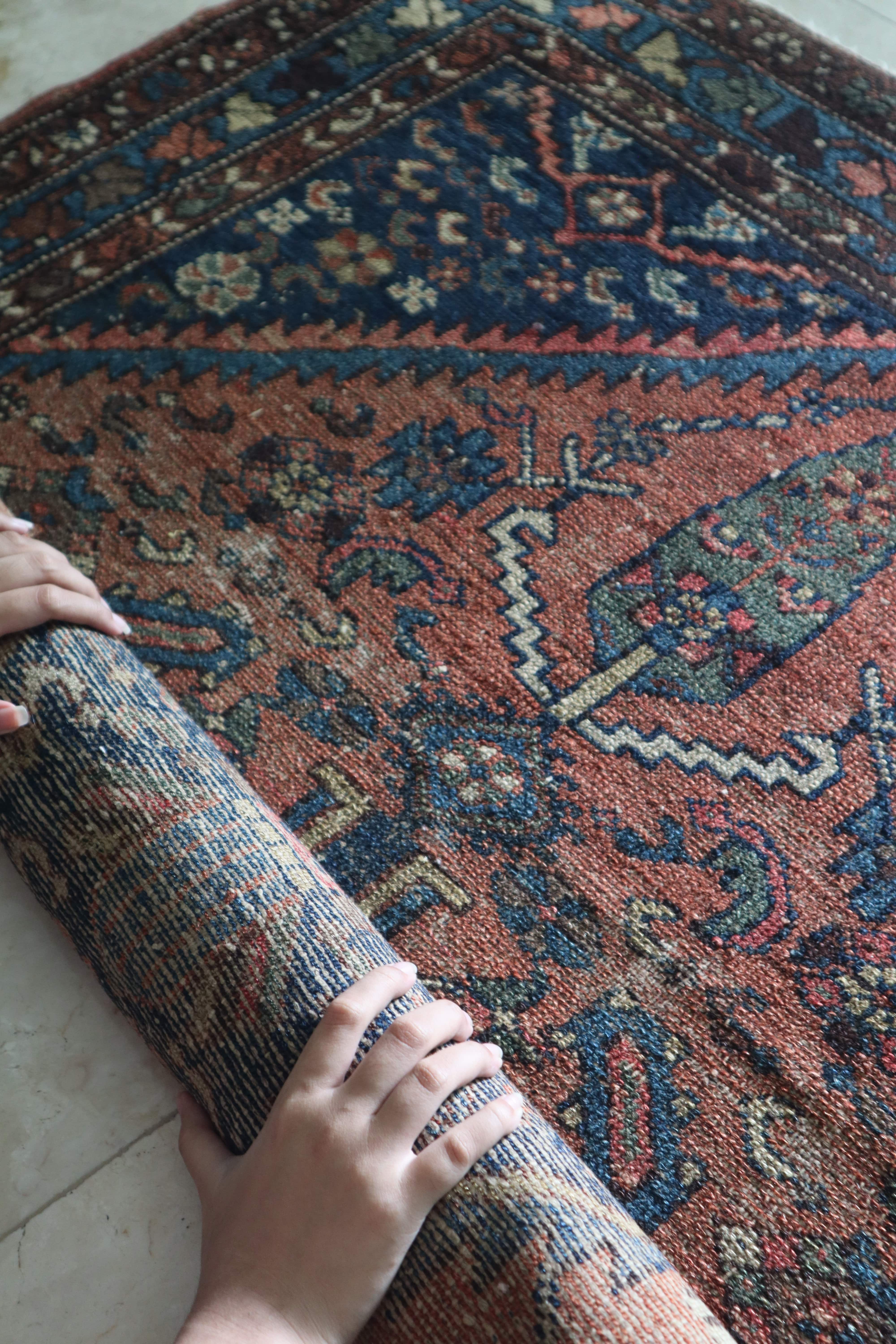 Vintage Persian Zoroastrian Rug — Terracotta & Indigo — No. 154