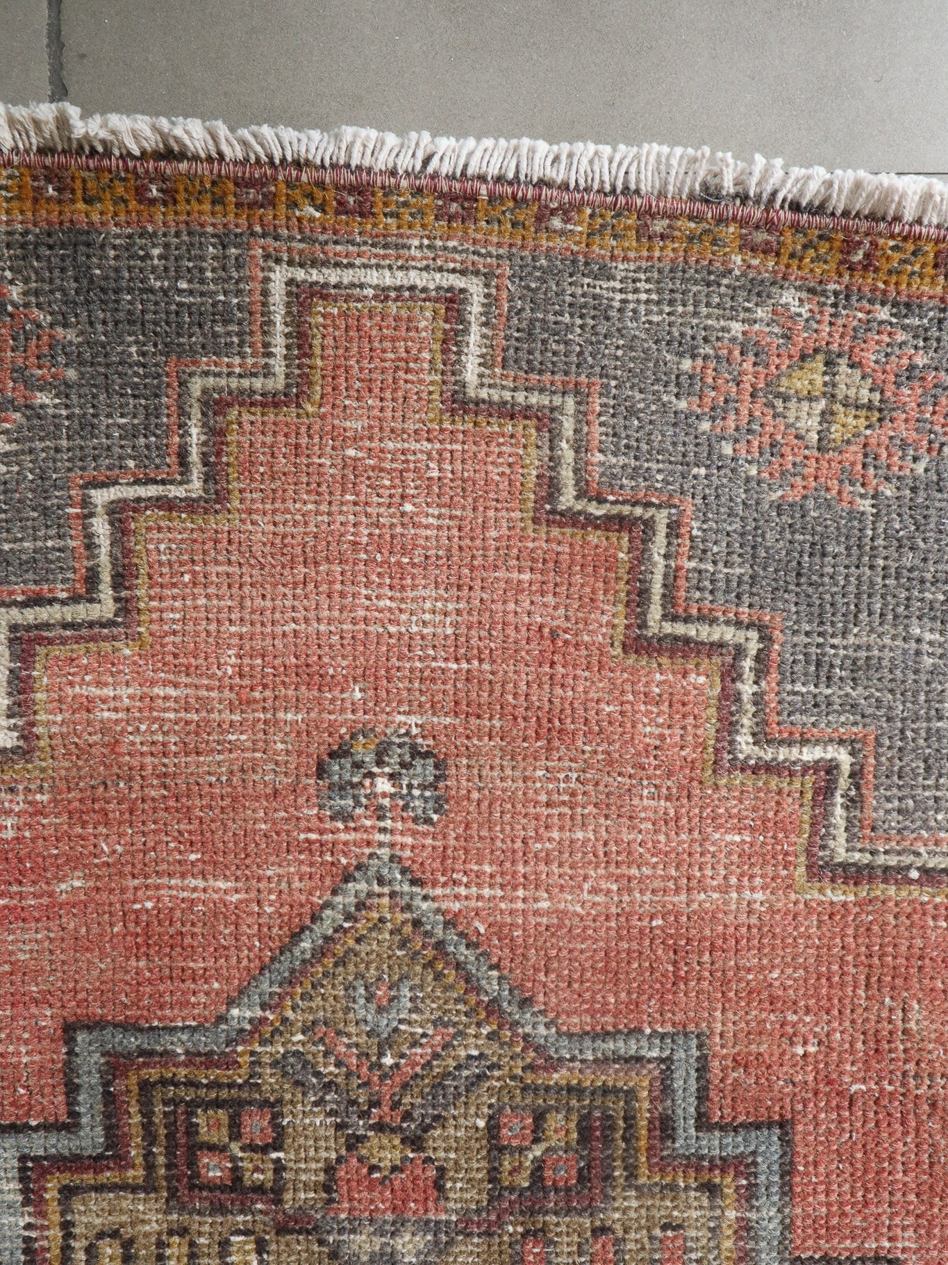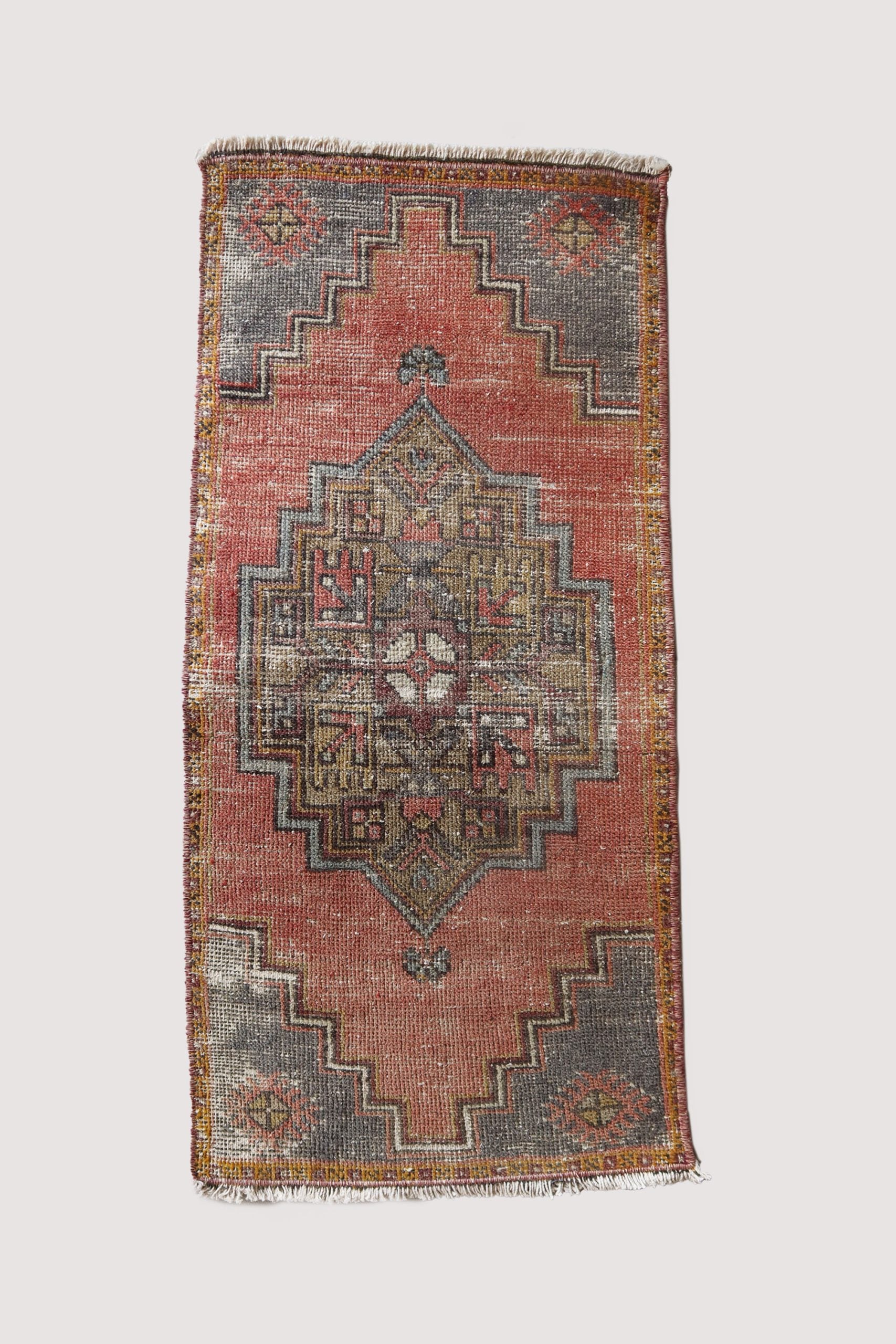 This rug has been professionally cleaned; age-related wear and natural inconsistencies are inherent in these unique, handcrafted vintage rugs.